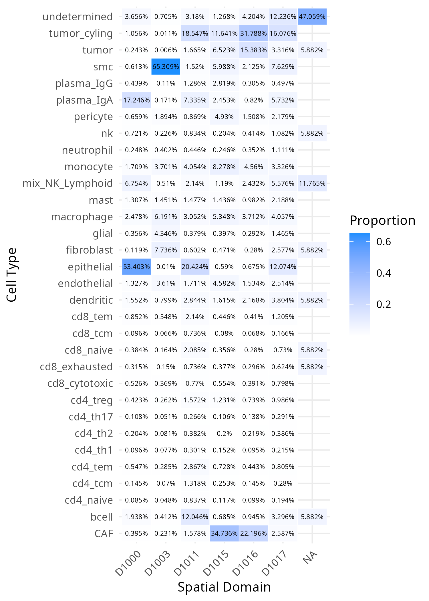 labs(y = "Cell Type", x = "Spatial Domain", fill = "Proportion") +