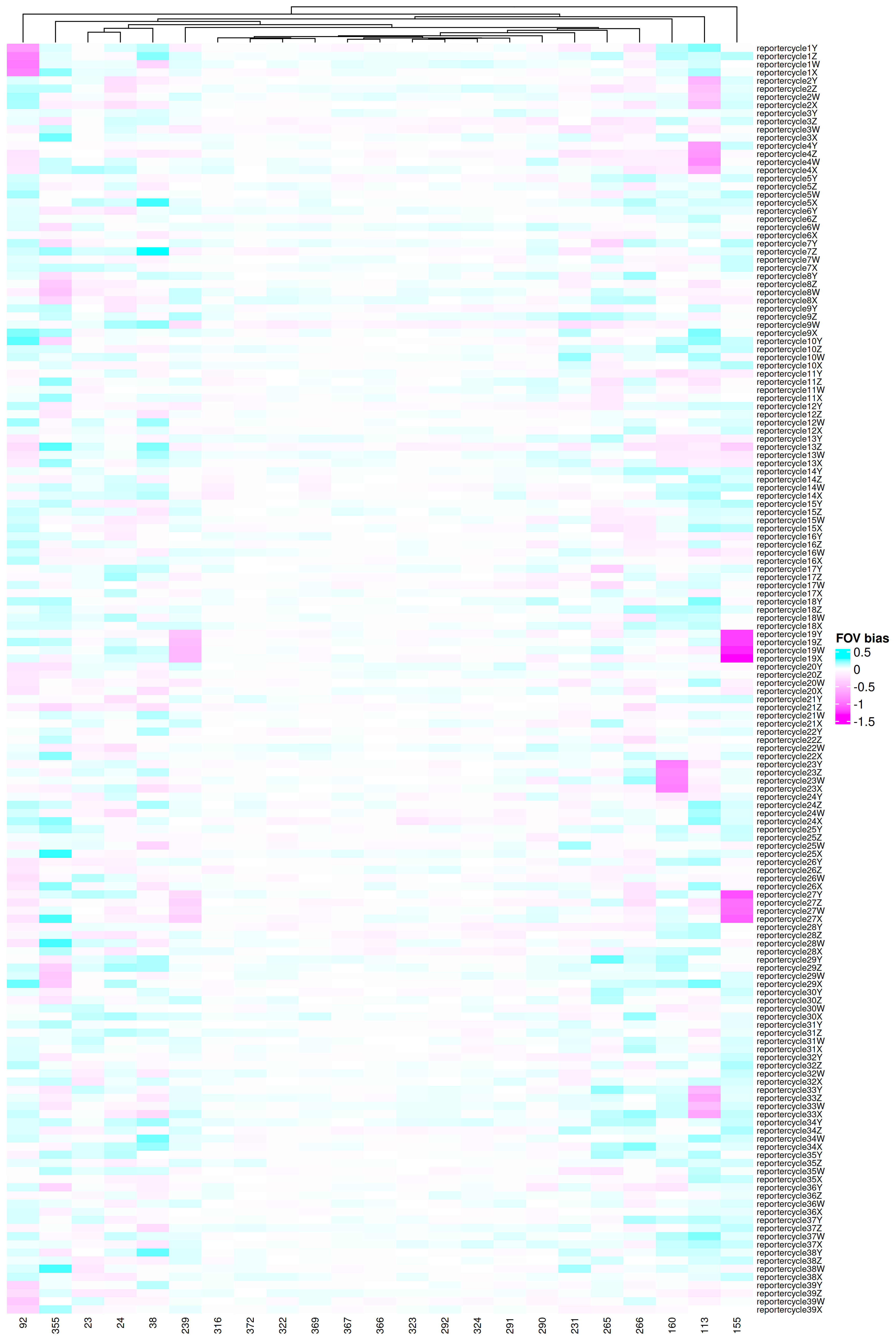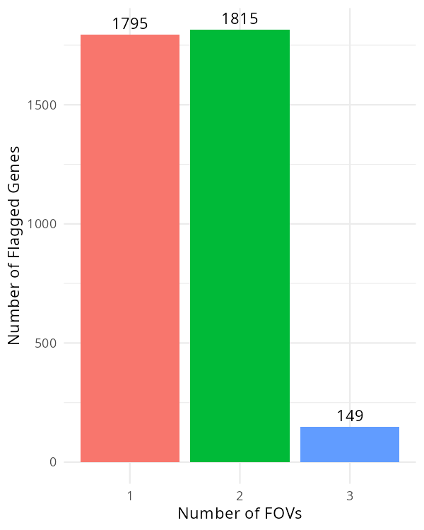 reduced signal from select genes. Potential causes for lower FOV quality (e.g. lower relative signal for all/select genes for a given FOV compared to majority of FOVs) include tissue/section quality, high autofluorescence, and inadequate fiducials. We can